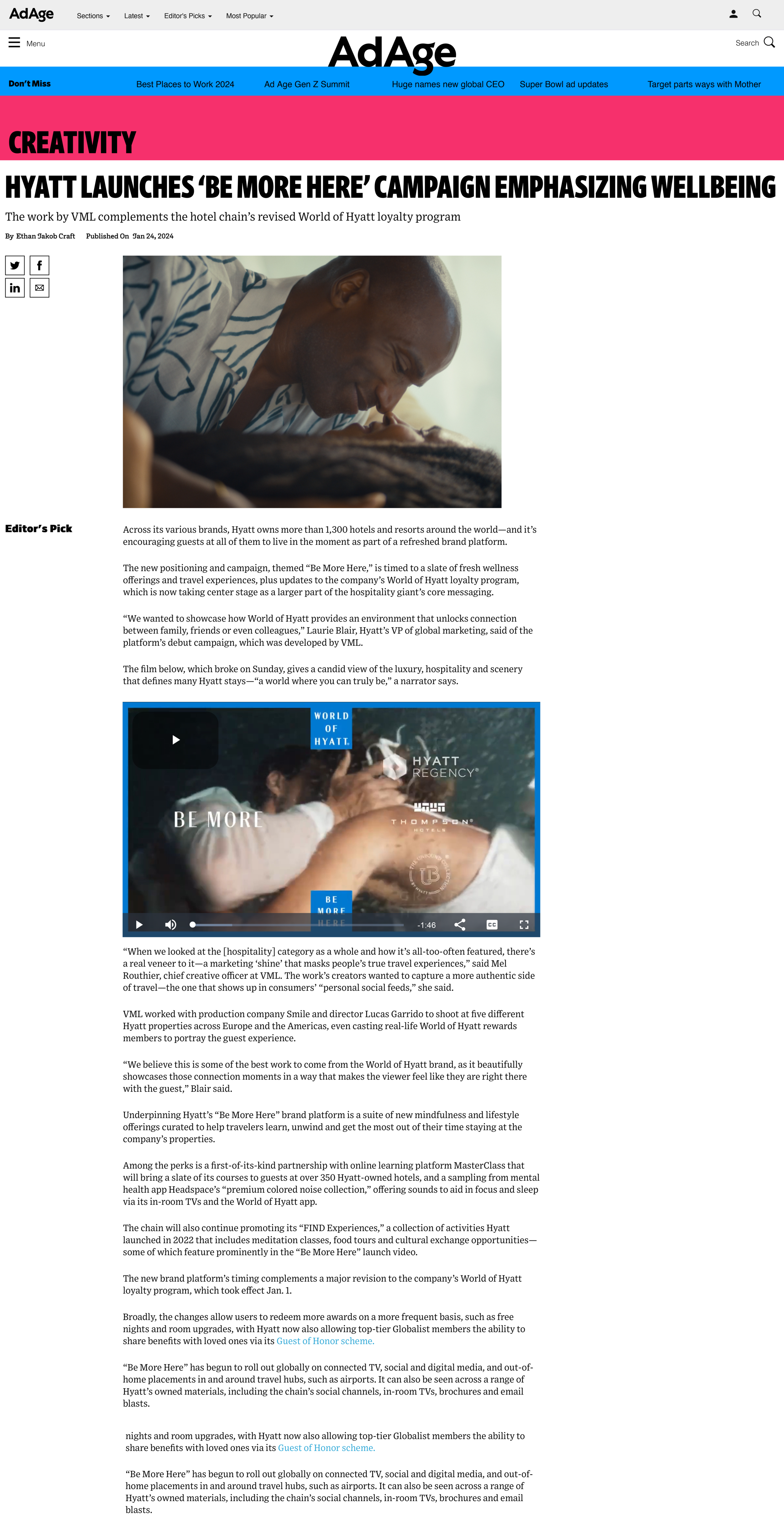A new global brand platform for Hyatt Hotels that shows you what happens when you can go somewhere and truly be.